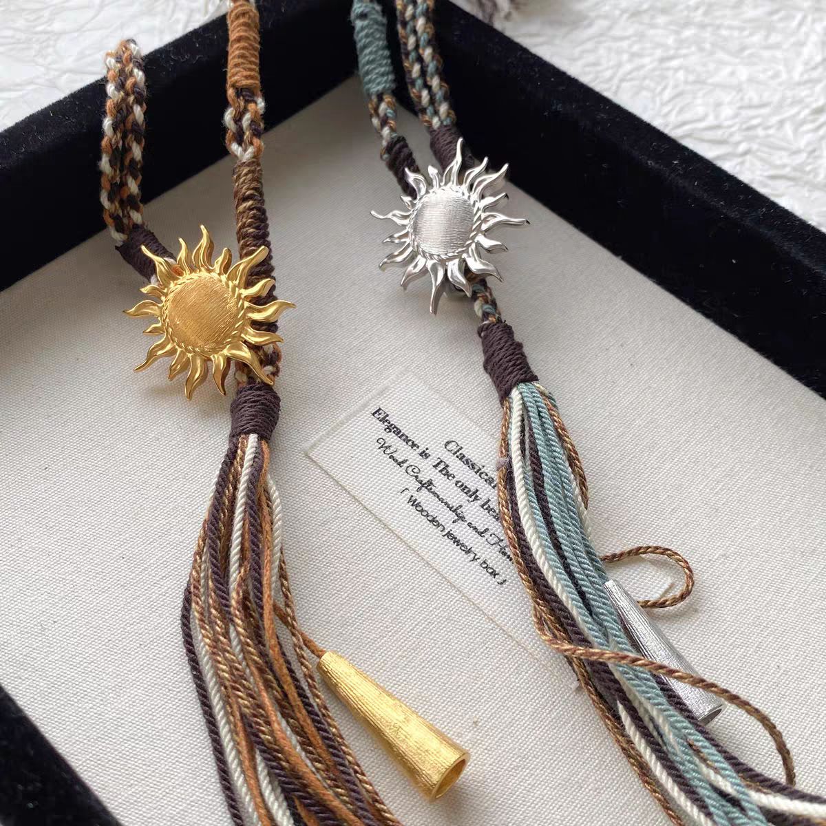 サンバースト ランダム ネックレス ウエスト チェーン ニッチ デザイン リゾート カジュアル エスニック スタイル 編み込み ファッション 多用途 高級文学