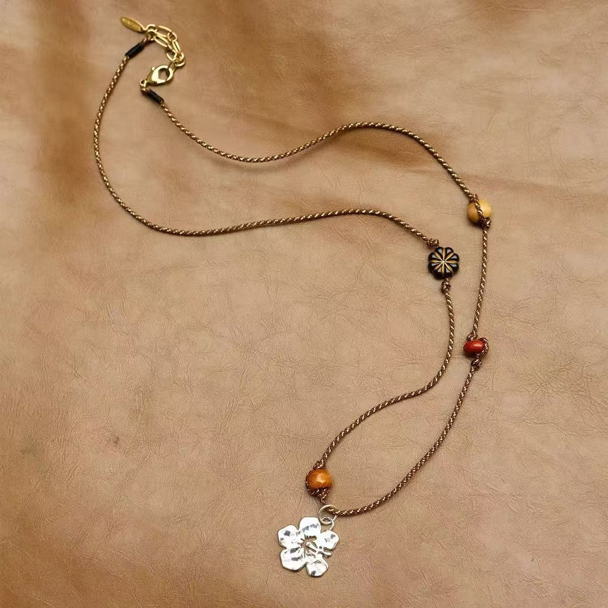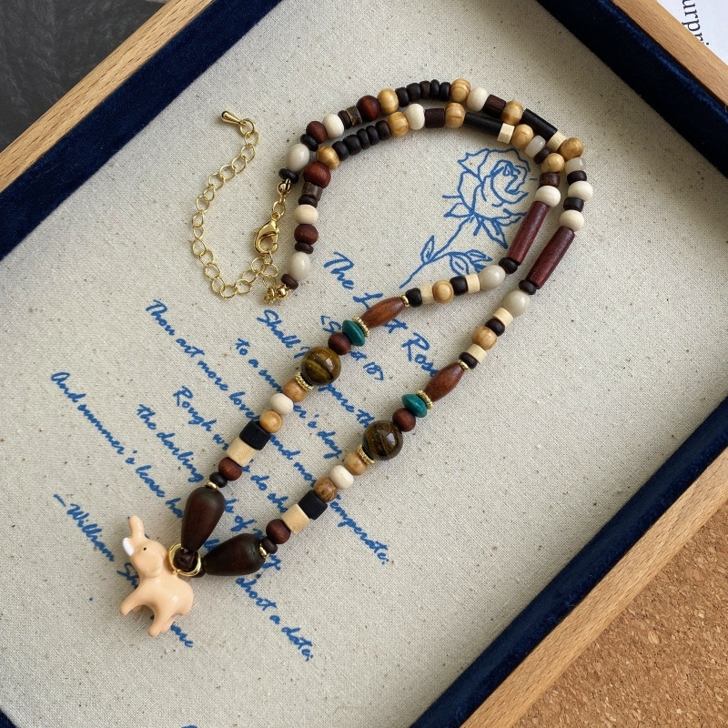 春夏の新スタイルブラウンビーズオレンジピンク立体象ネックレスニッチデザインハイエンド鎖骨チェーン女性用
