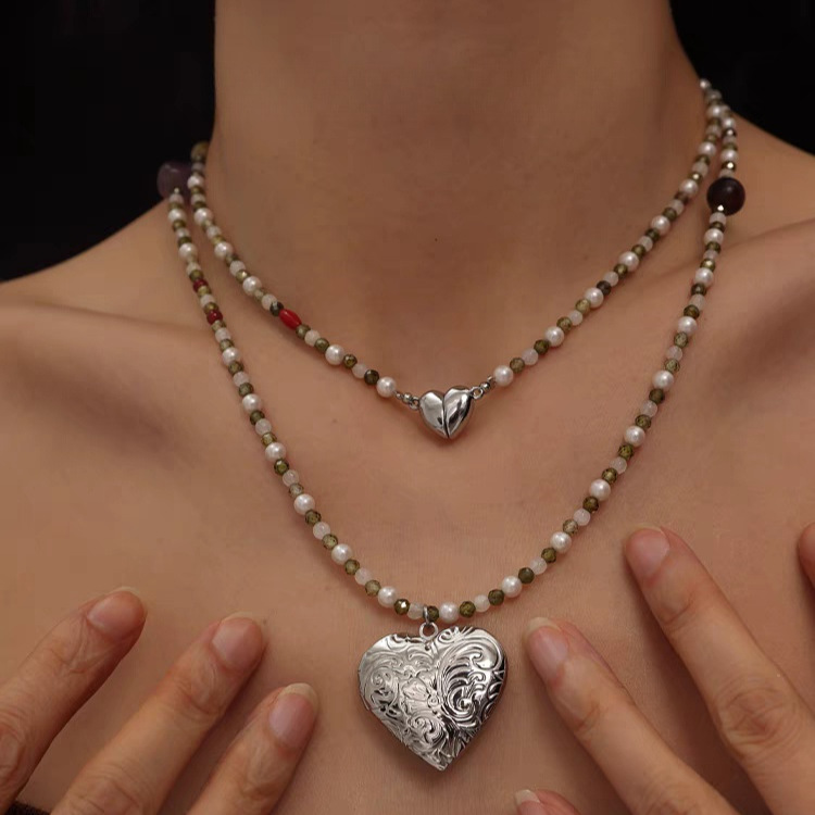 吴昕同款双层爱心天然石项链小众度假风独特简约叠戴高级感颈链女