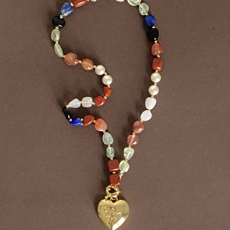 日本と韓国のニッチなデザインの天然石ラブビーズネックレス、ファッショナブルで甘い個性、多用途な鎖骨チェーン