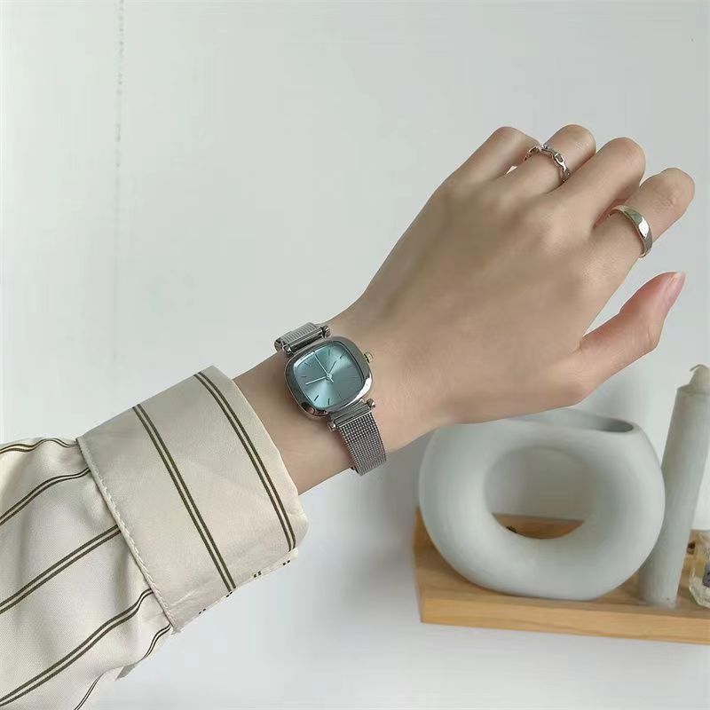 レディース腕时计小众シンプルで軽い豪华な冷たい风ブルースクエアins风金属メッシュベルトレディース时计高校学生