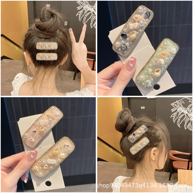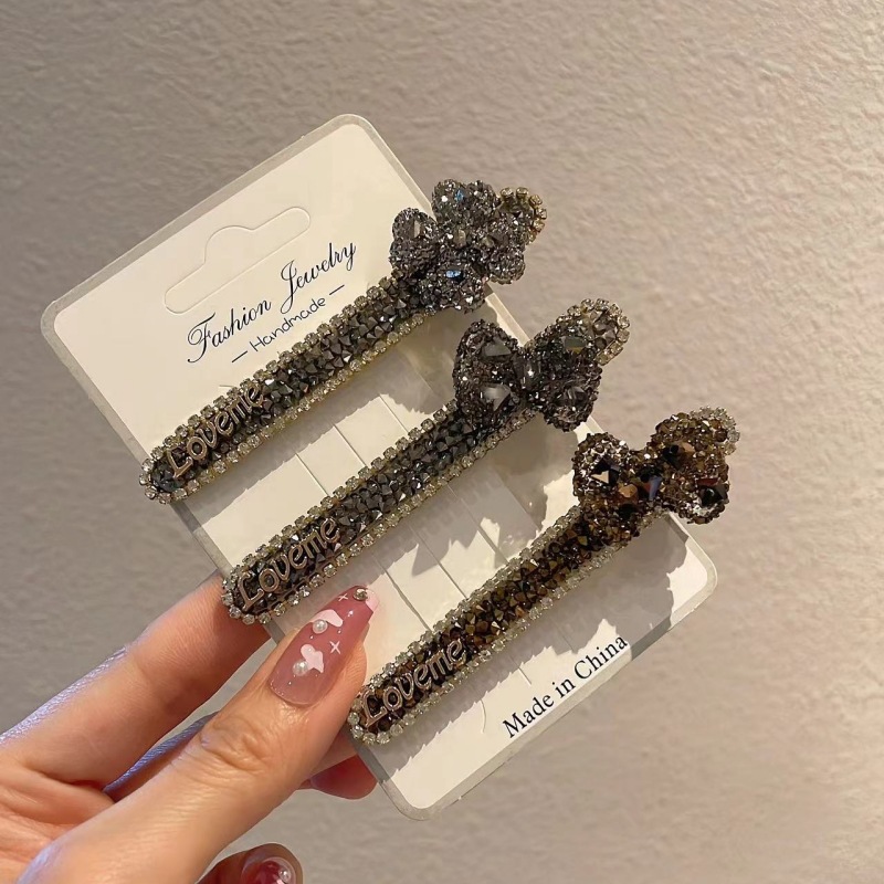 韓国版の気質の水のドリルの1字はドリルの高級なbbを挟んで前髪を挟んで蝶結びの水晶のアヒルの口を挟んで側の髪を飾ります。