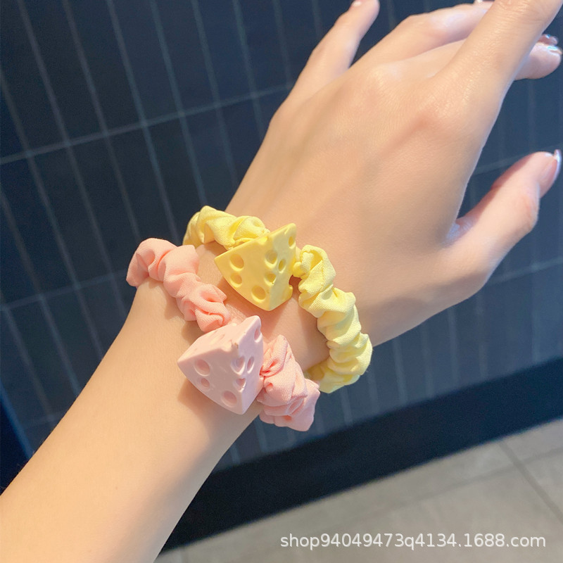 かわいいチーズのシュシュの少女は髪のゴムの輪の高弾力の髪の縄の団子の髪の縄の甘い子供の頭飾りを刺します。