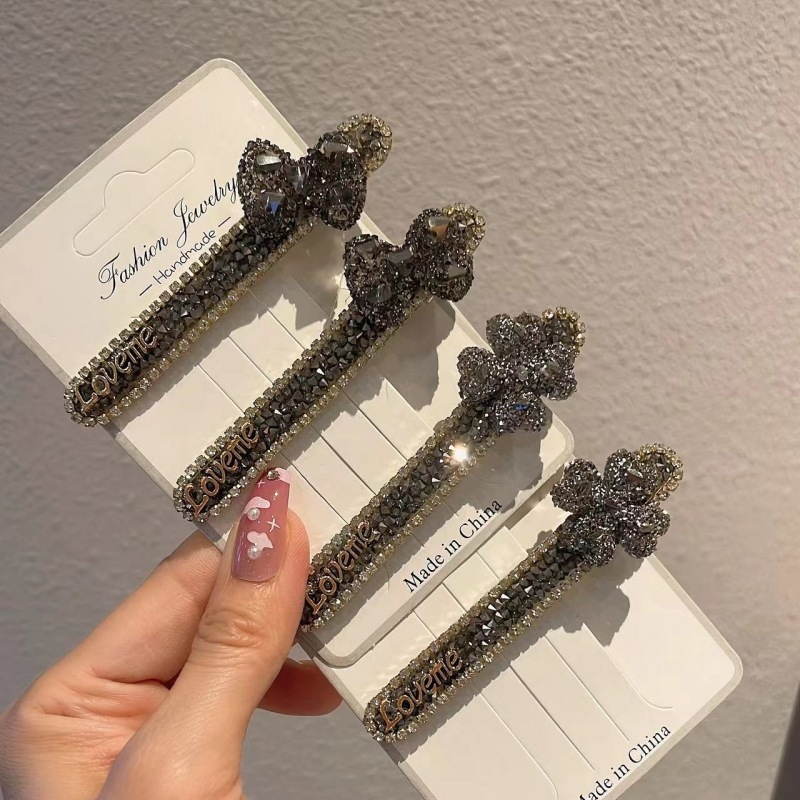韓国の気質の水ドリルのヘアピンの女性の韓国版の側の前髪の砕いたヘアピンの水晶のアヒルの口は1字を挟んでネットの赤い髪飾りを挟みます。