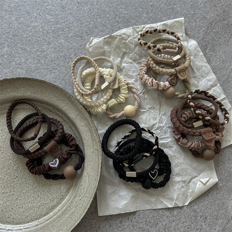 ミルクカレーの髪輪5本は高弾力の髪ひもを入れています。