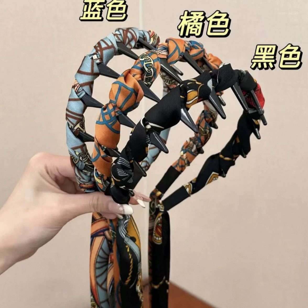 2025年新作女性用布製ウェーブヘアフープ、歯付き両用ヘアフープ、頭頂部洗顔専用ヘアピン、夏