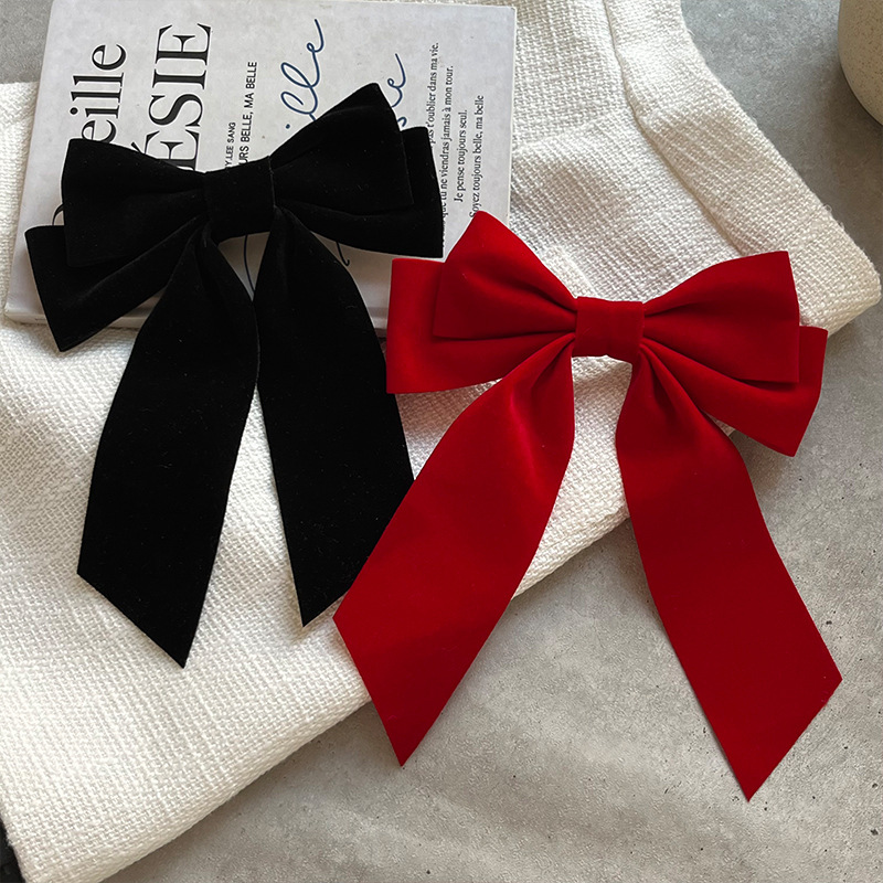 赤いリボンのヘアピン