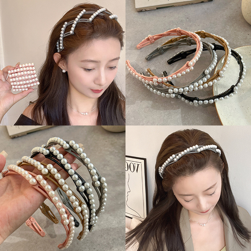 ビーズ折りたたみカチューシャ伸縮性女性新品洗面カチューシャ前髪額砕毛固定カチューシャ夏カチューシャ