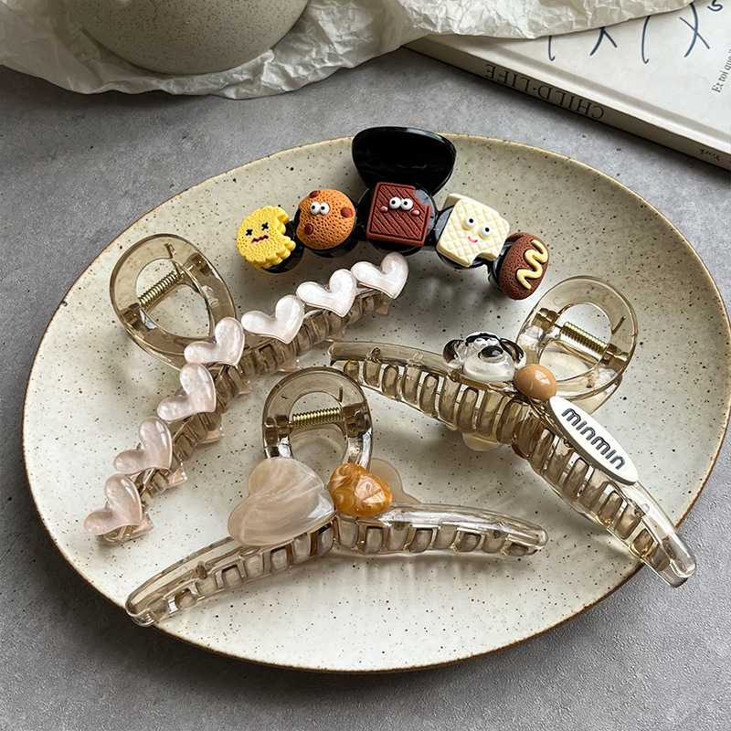 かわいいM豆ビスケットの夏のクリップ女性2024新高級感ヘアピン後頭部盤髪サメクリップ飾り