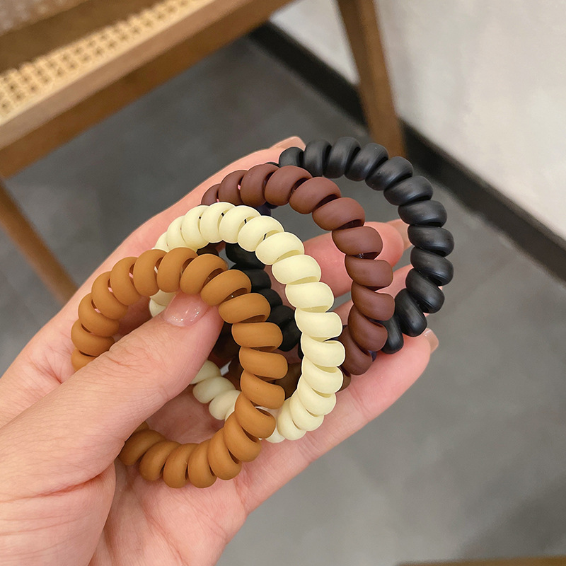 韓国のクリーム系のつや消し電話線の髪輪の女性の大きいサイズは簡単に髪の毛の皮の筋のカレーの色の系の髪紐の髪飾りを結びます。