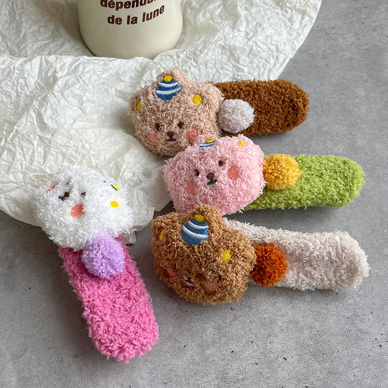 秋冬の子羊の毛のかわいい熊の髪は大きいサイズの毛のアヒルの口を挟んで顔を洗って髪飾りの少女の側の前髪を挟みます。