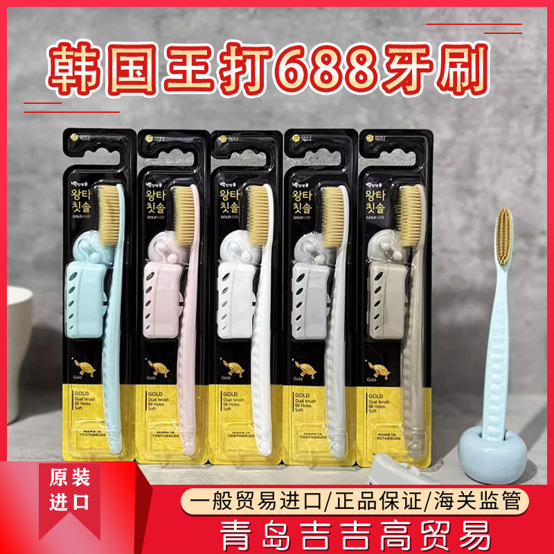 韓国輸入王打688金歯ブラシ炭歯ブラシ成人二重軟毛大頭歯ブラシ旅行携帯歯ブラシ
