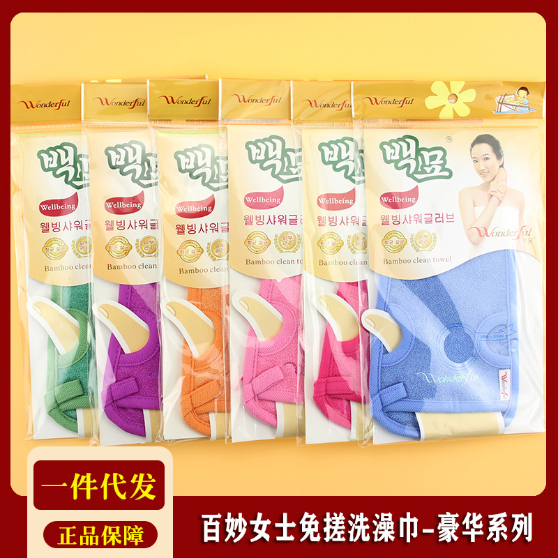 おしゃれで便利なバスタオルのカラフルなタイプの長いタオルの植物繊維の背中をこすります。