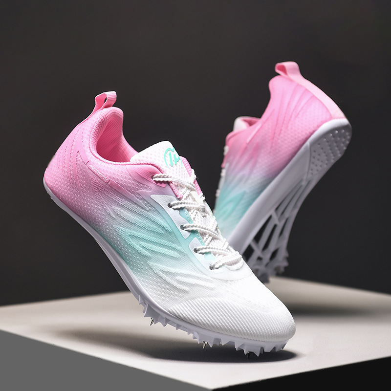 新型の中高生の体育試験の短距離陸上競技靴の高跳びのランニングシューズの中で長いランニングのスパイクの靴の現物