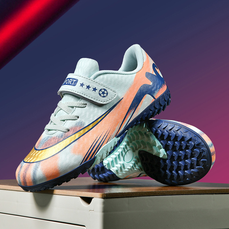 2025蛇年国境を越えた新型児童砕釘サッカー靴30-38ヤード芝生屋内外運動訓練靴