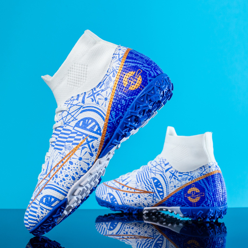 新型の男子サッカー靴のトレーニング靴は国境を越えて大きいサイズが高くて、青少年の学生のためにサッカー靴のagの長い釘の靴下のカバーを打ちます。