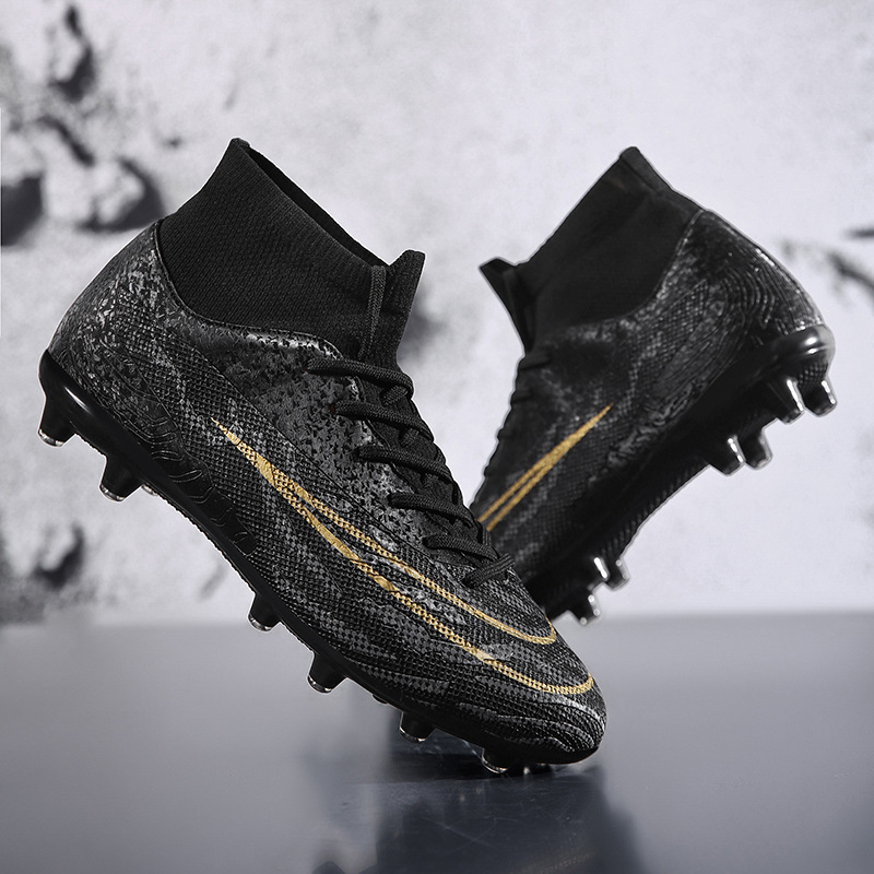 クロスボーダー46大きいサイズ47高組黒サッカー靴男女子供tf砕釘成人草ag釘運動訓練靴