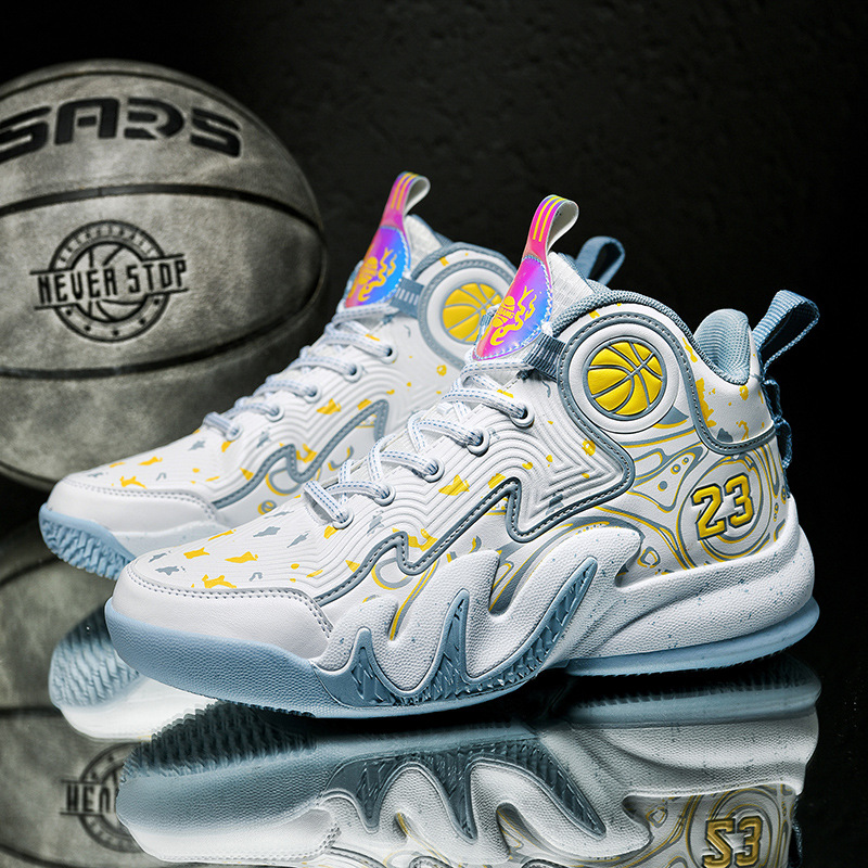 革の面のバスケットボールの靴の男性の戦靴の子供の青い靴のセメントの土地は運動場の実戦の小中学生の運動の靴を訓練します。