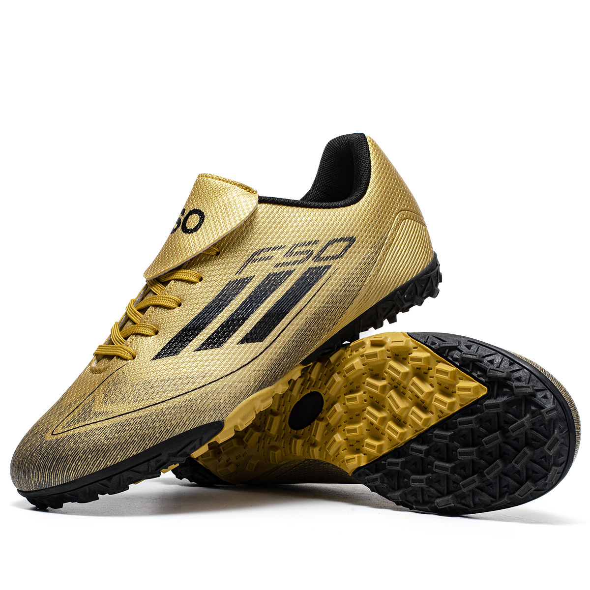 レースなしの新しいシャンパンゴールドサッカーシューズ男性用大人TFスパイクAG人工芝ゴムドロップシッピング