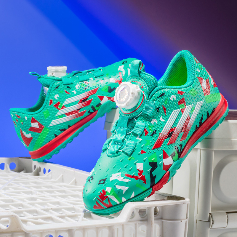 紐なし子供用サッカーシューズ TF ブロークンスパイク 男の子 女の子 小中学生 トレーニングシューズ 回転ボタン スポーツサッカーシューズ