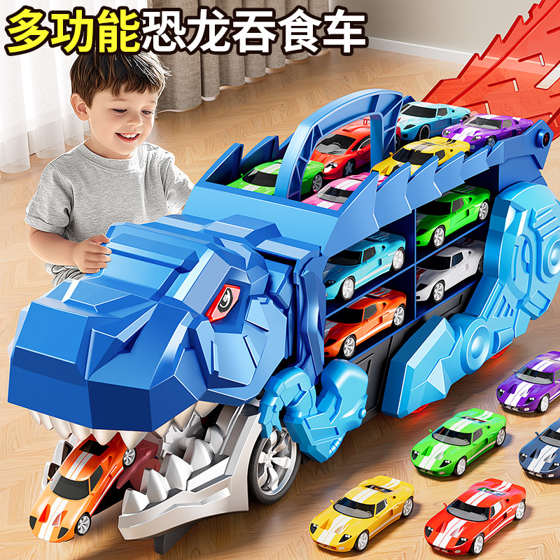 子供が恐竜のおもちゃの車を飲み込むティラノサウルス レックス変形トラック男の子教育収納スクーター合金車