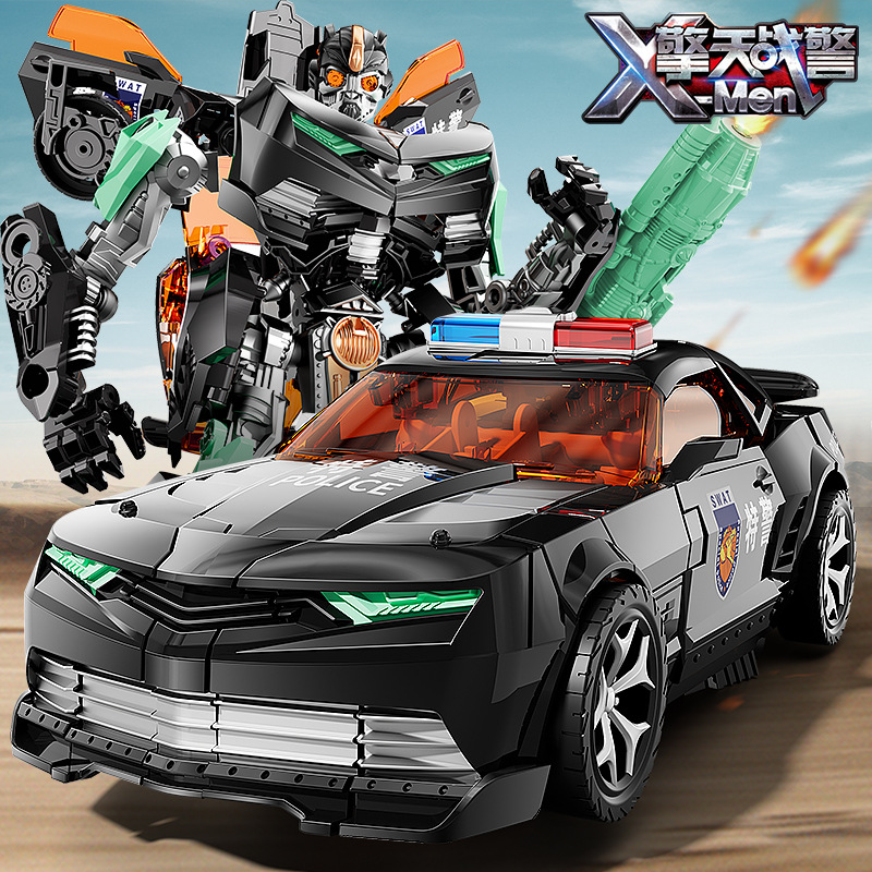 錦江変形玩具機甲ロボット子供玩具パトカー自動車模型少年武器セット付き機械