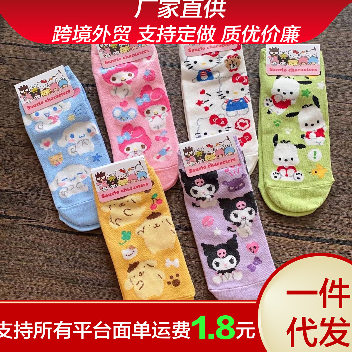 春の夏の漫画の靴下の美楽迪の玉桂の犬のクロミのケイティの猫のパチャの犬の韓国の東大門のショートソックスの子供