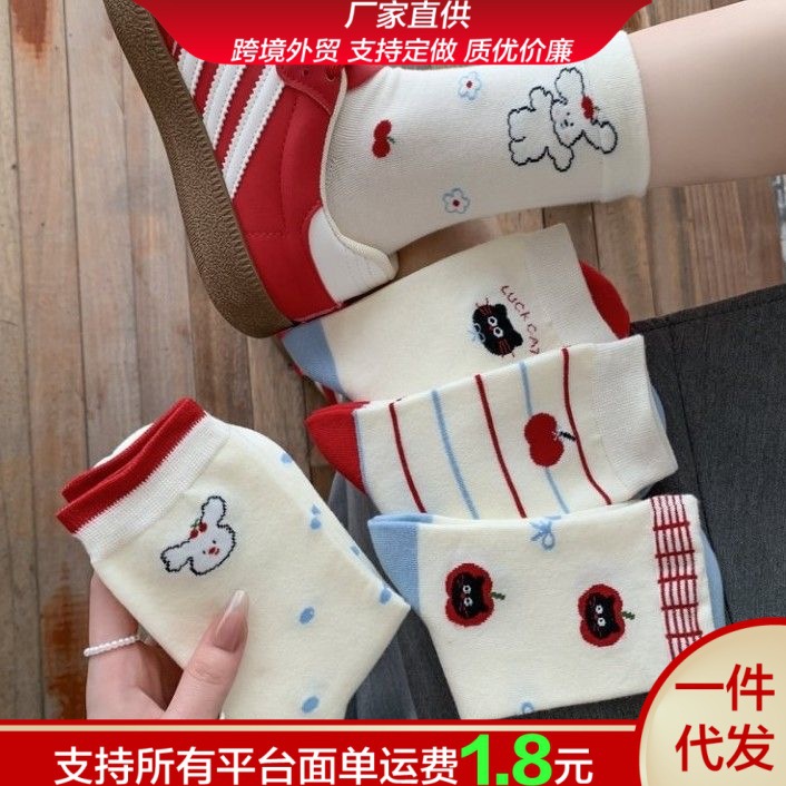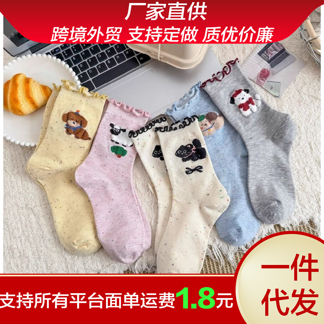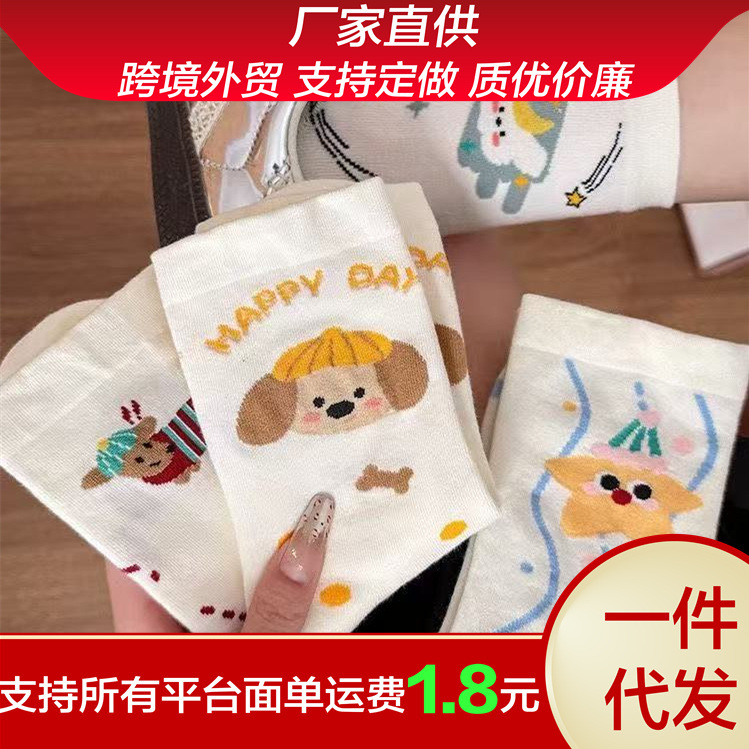 春夏純色ストッキングins韓国風アニメかわいい子犬靴下女性夏新作落書き風ソックス