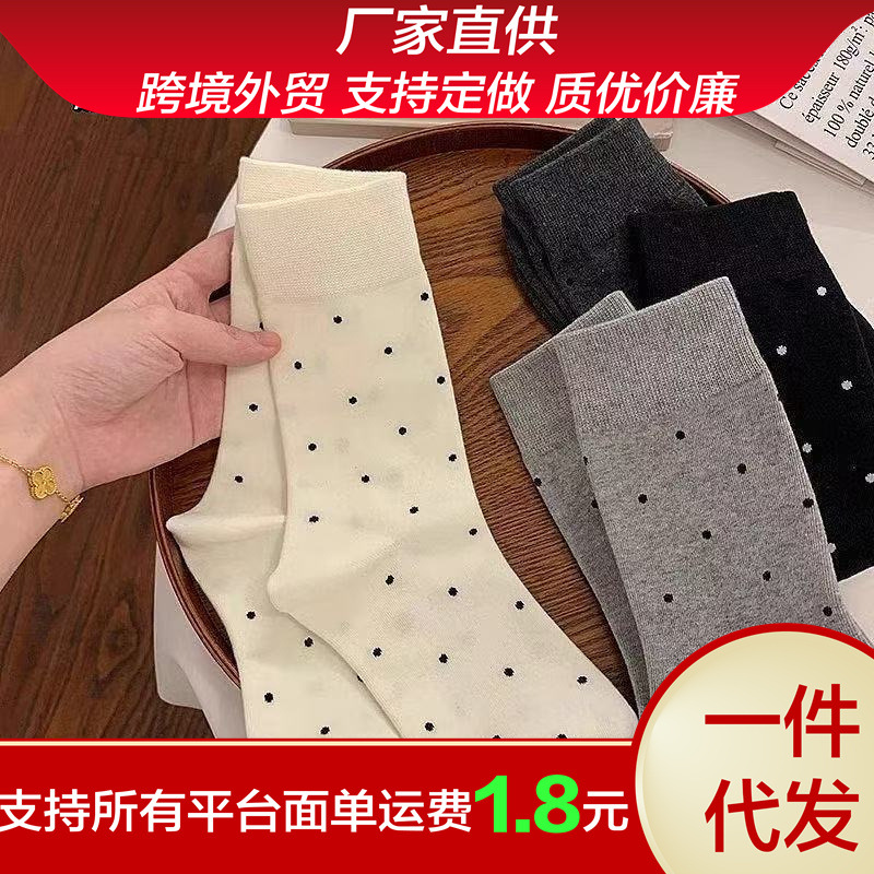 2025新型ネット赤ストッキング中筒百合靴下女春夏の甘い波点百合灰色の靴下女