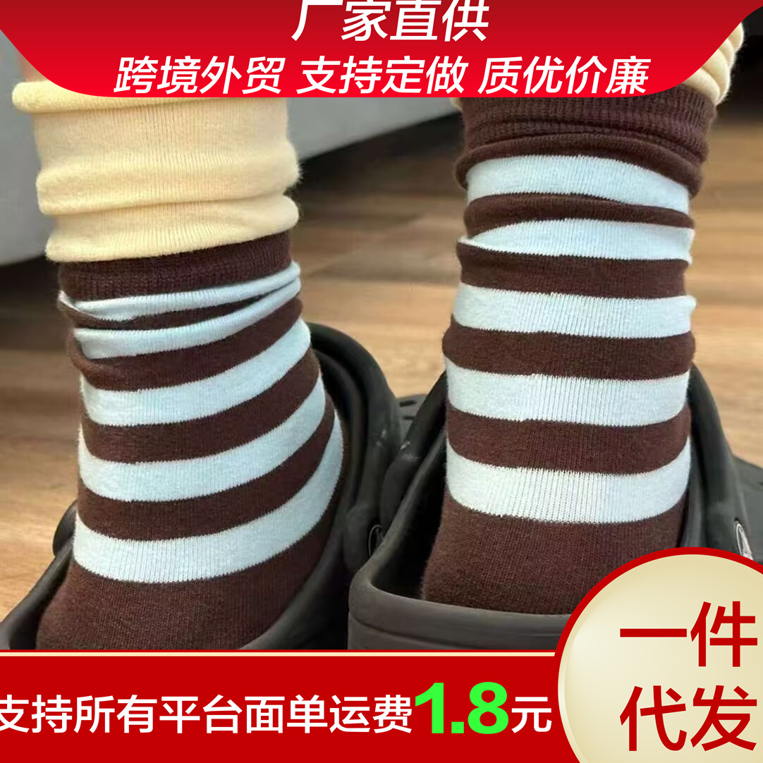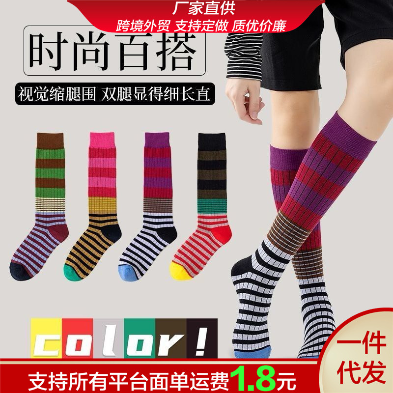 春夏人気のレトロレディースコントラストストライプメイラードスタイルファッショナブルなスリムロングチューブレディースソックスニーハイソックスパイルソックス
