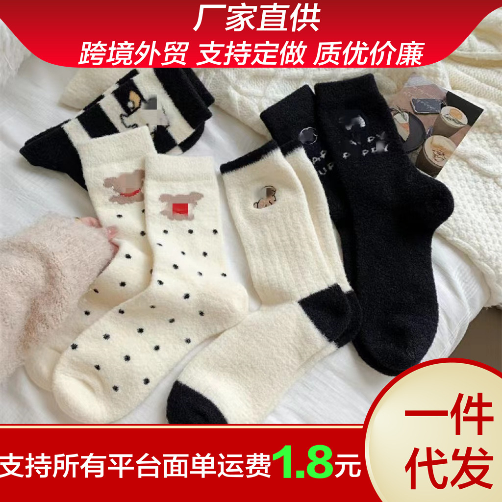 ミンクベルベットソックス レディース 春秋 ミッドチューブ 厚みのあるベルベット 暖かいコーラルベルベット 防寒 睡眠フロア 産後