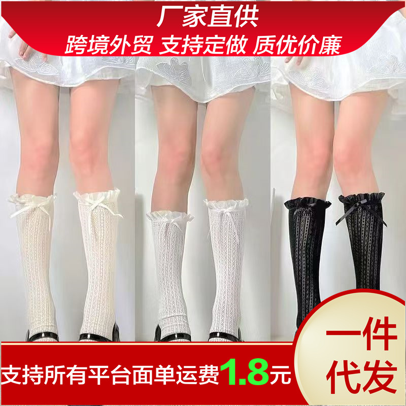 Lolita白いアンドロメダ蝶ネクタイ王女靴下夏の薄いタイプの中筒靴下日系純色レースjk靴下