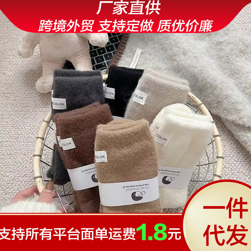 秋冬の美ラードの豪毛の靴下の純色の布の標識は厚い中筒の靴下の毛のふわふわしている女性の靴下とベルベットの月子の靴下をプラスします。