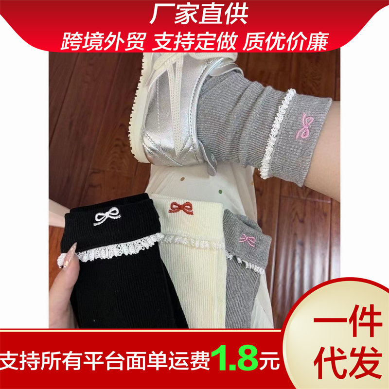 日本のかわいい蝶結びの木の耳元の靴下の女性の春の夏の甘い少女の中筒の靴下jkの制服のレースの靴下