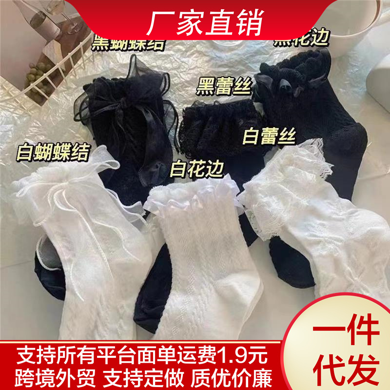 春夏モデルins高颜値蝶結び靴下かわいい甘い少女風百合韓版レース白靴下