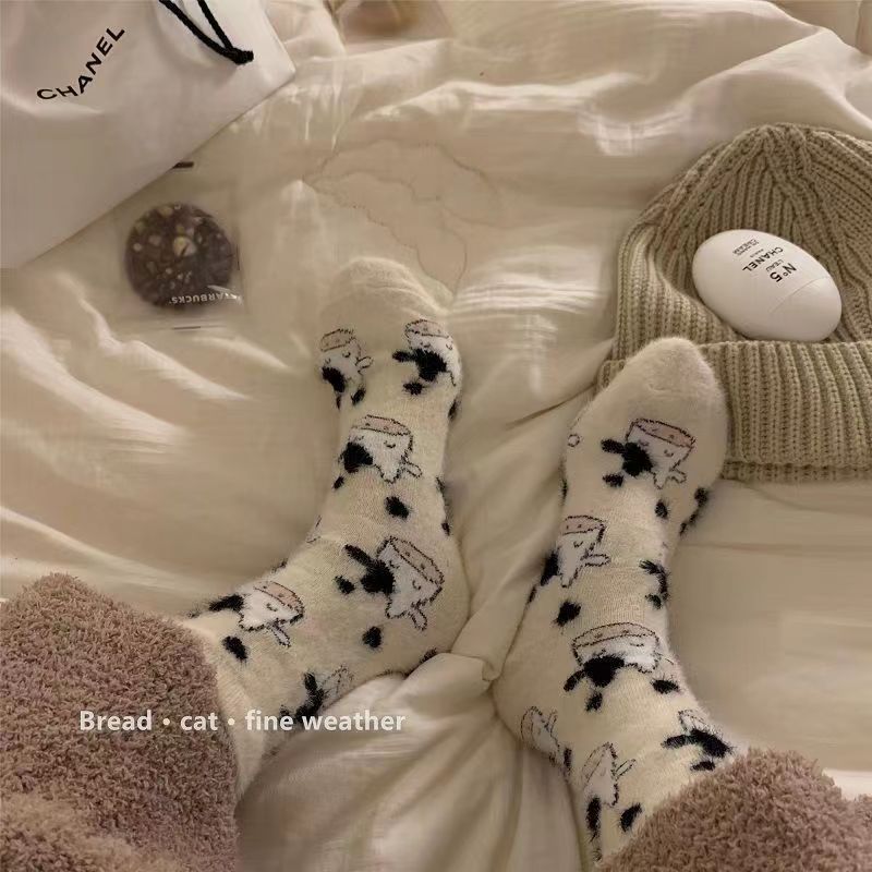 春と秋の高颜値の子猫のプリントの外に女性の靴下を着ます。