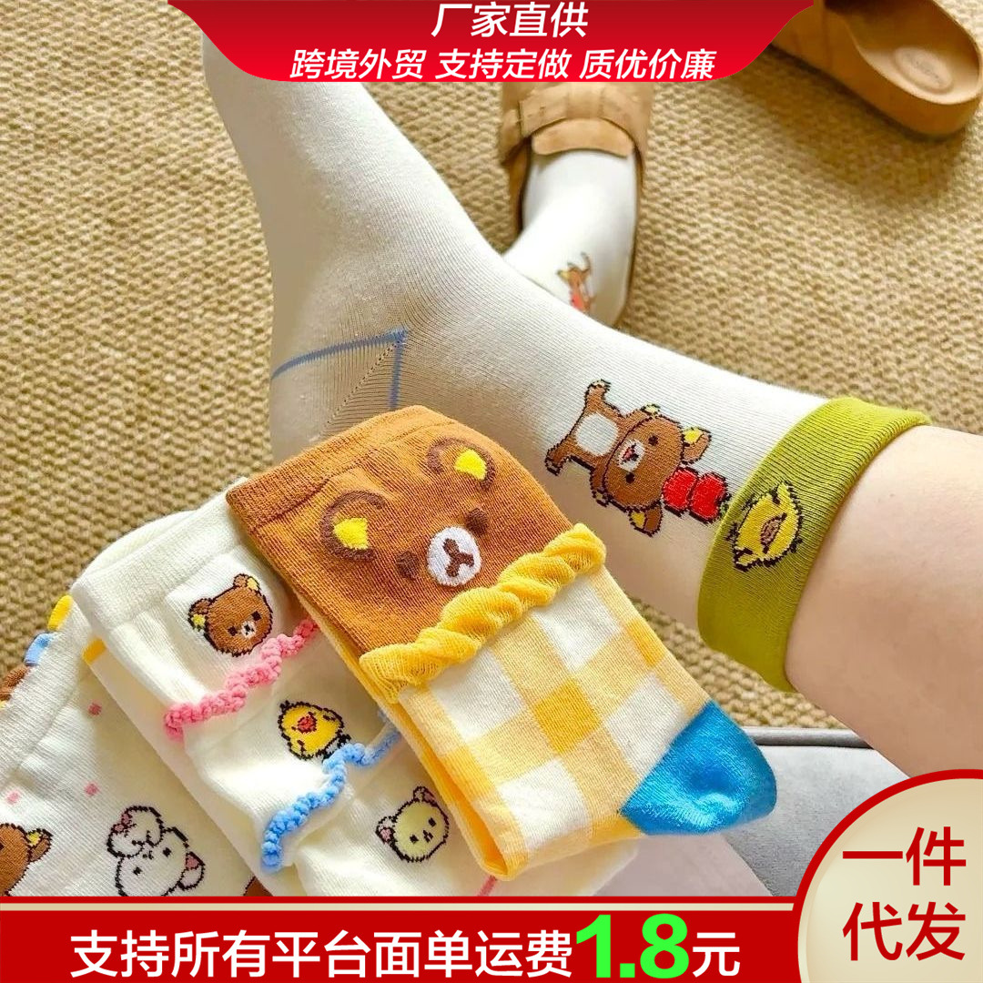 春夏カレッジスタイルミッドカーフソックス甘い新しいクリエイティブ漫画リラックマかわいい日本のクマキャンディーカラー