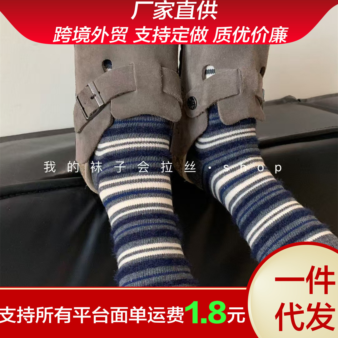 秋冬の日本系insファッションのストライプが色の毛にぶつかってストライプの靴下をつなぎ合わせます。