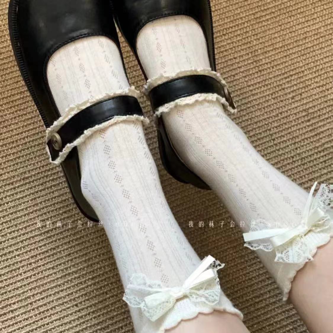 2024春夏新作スウィートレッグソックスLolita蝶結びホワイトミディアムソックス日系レース滑り止め
