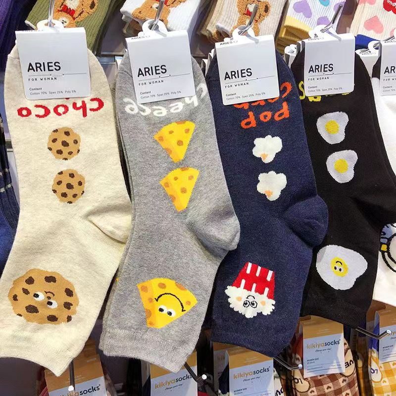 韓国版insファッションデザイナーのドーナツ中筒漫画靴下