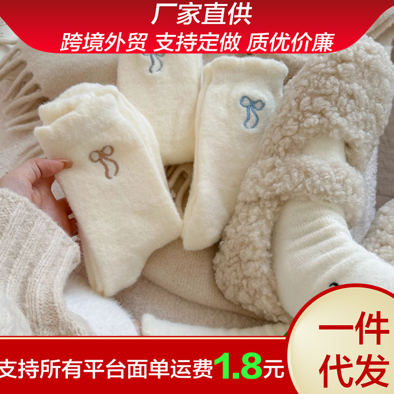 2024新型秋冬厚手パイル保温靴下高颜値五色蝶ネクタイはモチモチと優しい
