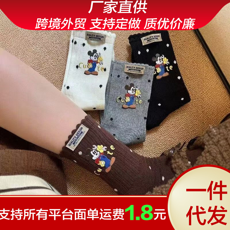 デザイナーのモデルはかわいいミッキーのポイントの布の標準の靴下の4色は中筒の靴下の春夏の骨のない靴下を選択します。
