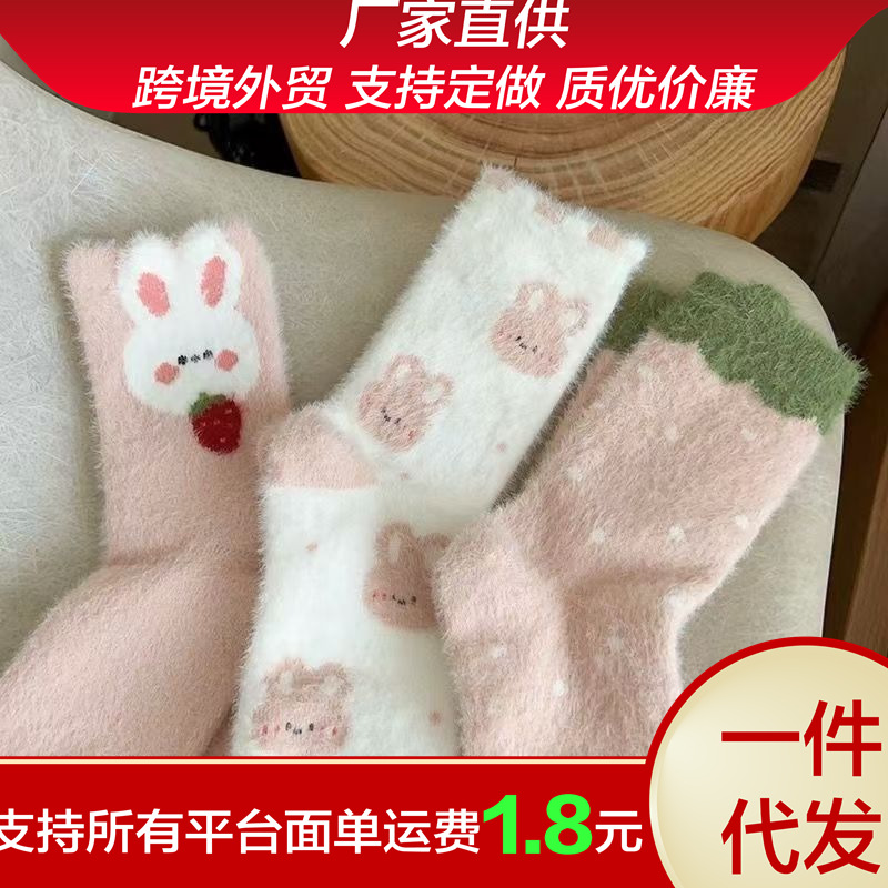 ウサギの靴下の女性のかわいいウサギのピンクの厚い保温の靴下の床の靴下の秋冬の長い筒の睡眠の靴下