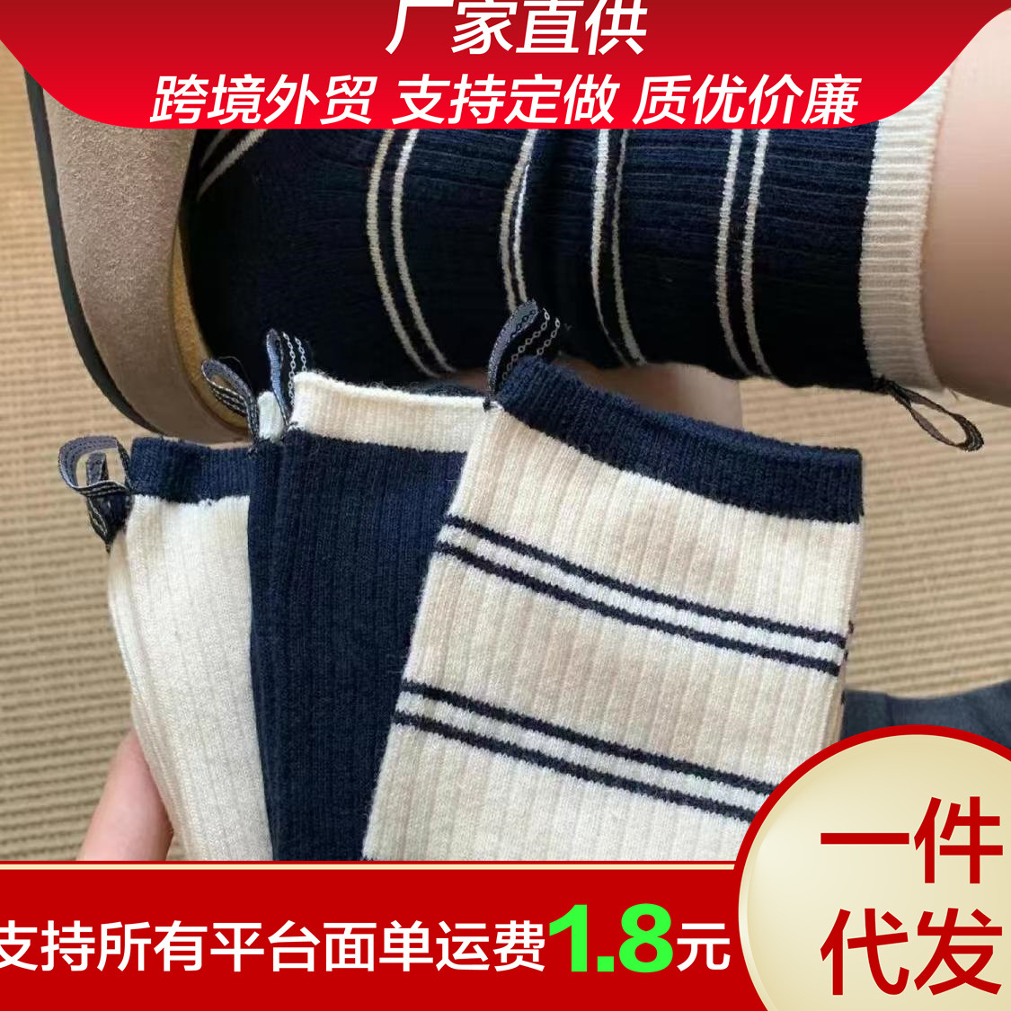 韓国ins学院秋冬百合厚手のストライプのストッキング