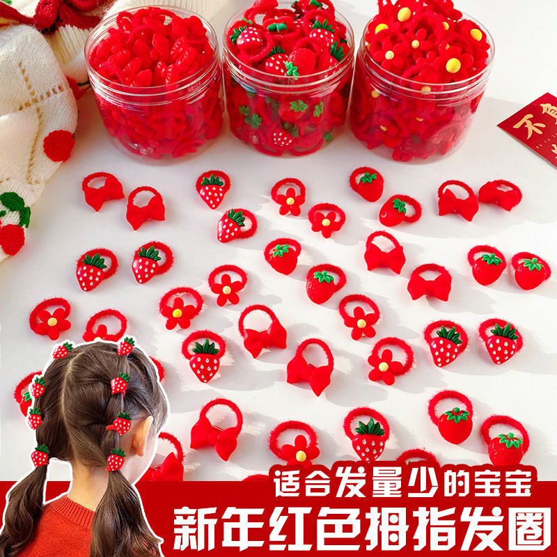 韓国のぬいぐるみの小さい髪輪の赤ちゃんの赤い紐のかわいい花のゴムの子供の女の子の紐の髪飾り