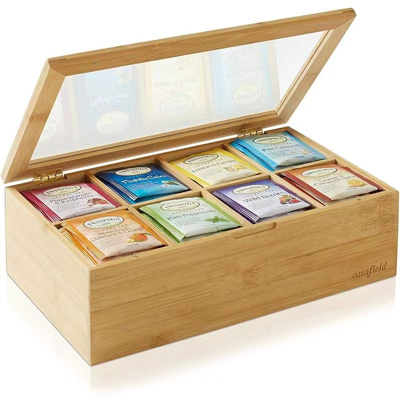 木製ジュエリーボックス透明アクリル板蓋付き木製ティーバッグ収納ボックス多格精油貯蔵ボックス