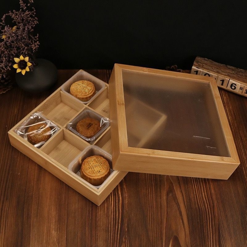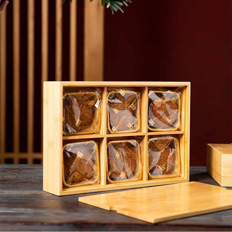 中秋の月餅の贈り物の箱の楠の竹の木の月餅の包装の箱の木製の月餅の木の箱の木の段は卸売りすることができます。