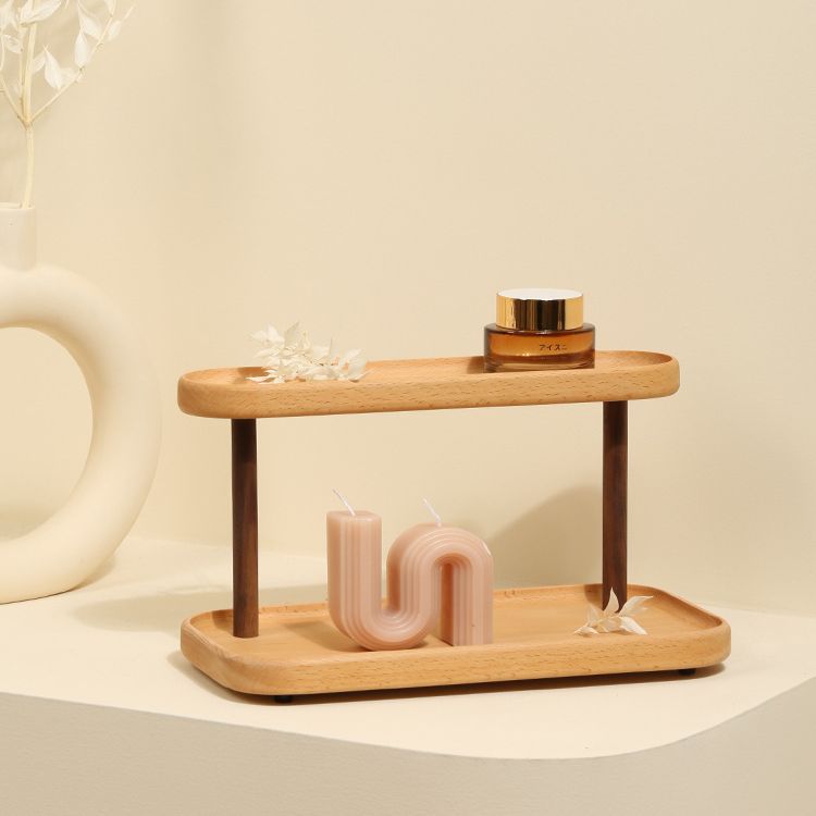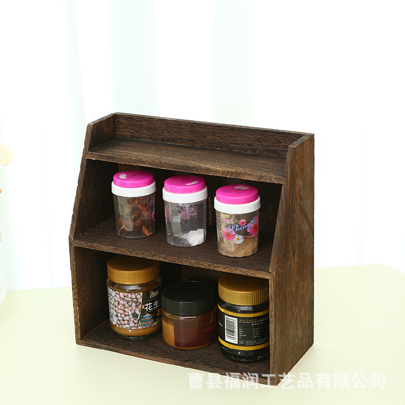 実木二重棚雑物収納棚多肉展示花棚デスクトップ化粧台デザート置物棚