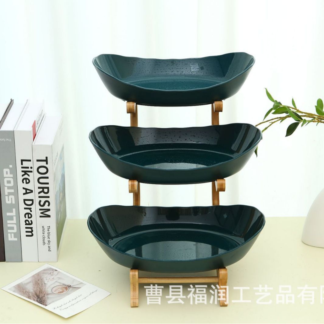 実木果物キャンディートレイ三層木製果物皿デザート菓子棚フロント中国式三層レトロ展示棚