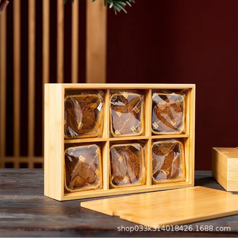 木製月餅箱中秋プレゼント月餅包装創意木製帯分格手作り箱プレゼント包装実木箱